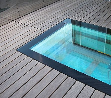 Im Boden der Dachterrasse eingelassene Glasplatte erlaubt Blick auf den Essbereich